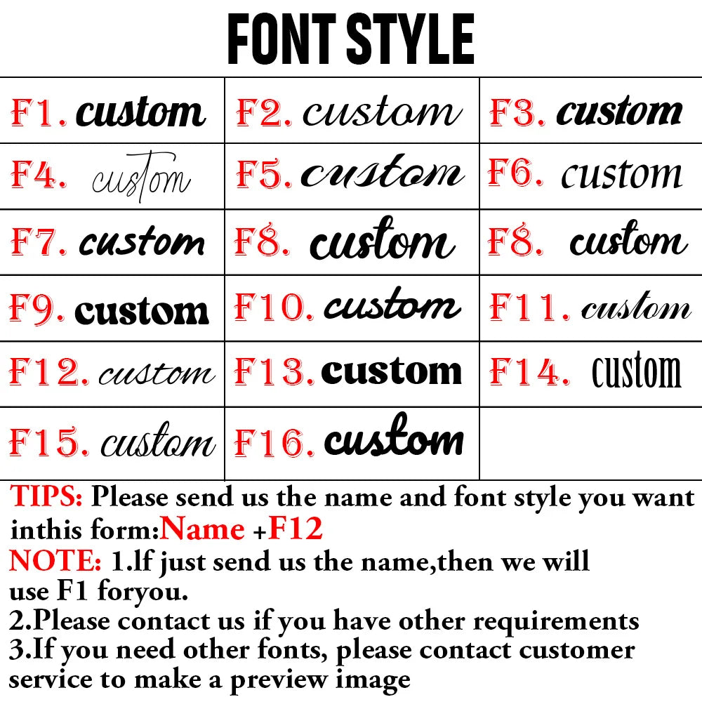 When placing your order, please include the custom name (15 Characters Max) you'd like engraved in the notes at checkout. If we don’t receive it within 48 hours, we’ll default to engraving the recipient’s name in Font F1 with a classic flower pattern.